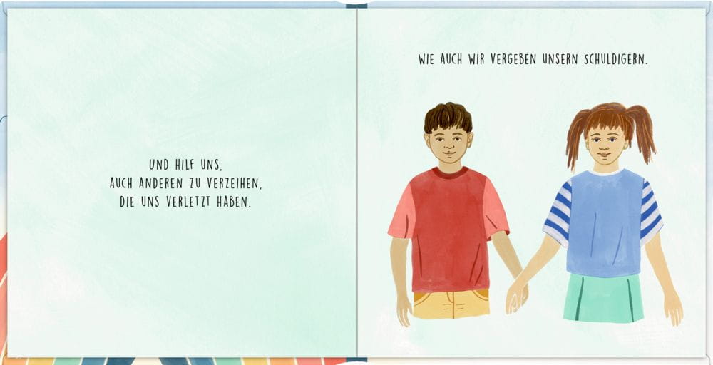 Das Vaterunser verbindet Christinnen und Christen auf der ganzen Welt. Dieses bezaubernde Geschenkbüchlein erklärt das bekannteste Gebet der Christenheit auf kindgerechte Weise und wird durch liebevoll illustrierte Gesten ergänzt. Kindgerechte Erklärungen: verständliche und einfühlsame Darstellungen des Vaterunsers. Liebevoll illustrierte Gesten: visuelle Unterstützung, die das Gebet lebendig macht. Wertvolles Geschenk: ideal, um Kindern die Bedeutung und Schönheit des Gebets näherzubringen. Integriertes Kuvert: für ein Geldgeschenk. Dieses Büchlein ist ein wunderbares Geschenk für Kinder, das ihnen die tiefere Bedeutung und den spirituellen Wert des Vaterunsers vermittelt. Verschenken Sie eine liebevolle Einführung in das Vaterunser – ein Gebet, das Generationen verbindet und die Herzen berührt.