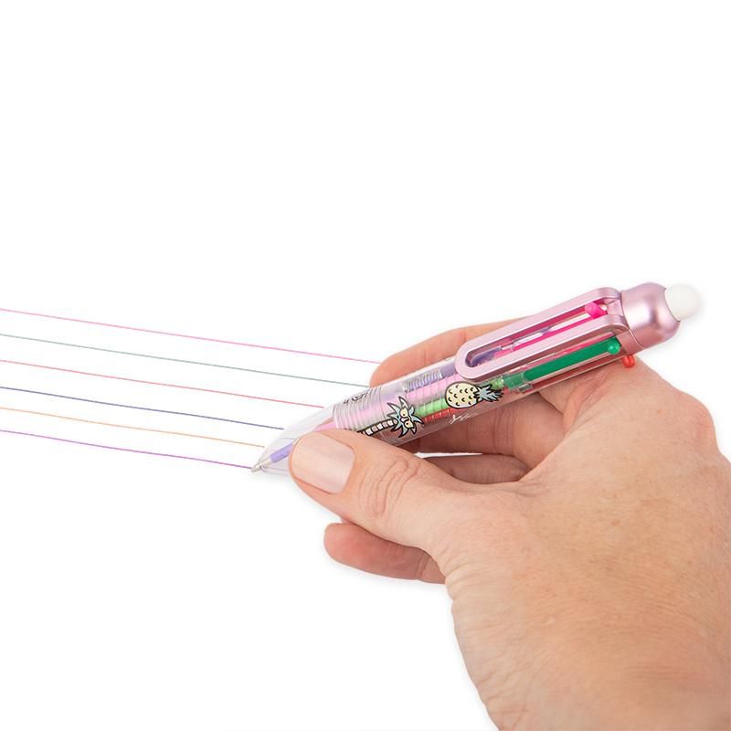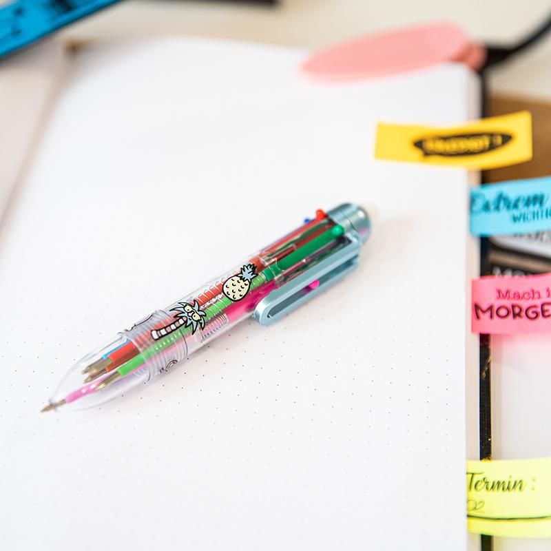 Mach dein Alltag bunt mit diesem 6 in 1 Mehrfarbkuli. Trendiges Design und 6 verschiedene Farben (pink, lila, orange, blau, rot, grün) in einem Stift - zum Schreiben, Malen und Gestalten. Zusätzlich verfügt der kompakte Mehrfarbkuli über eine praktische Touchpen-Funktion. Perfekt für Schule, zum Scribbeln u.v.m.! Strichstärke 0,7 mm.