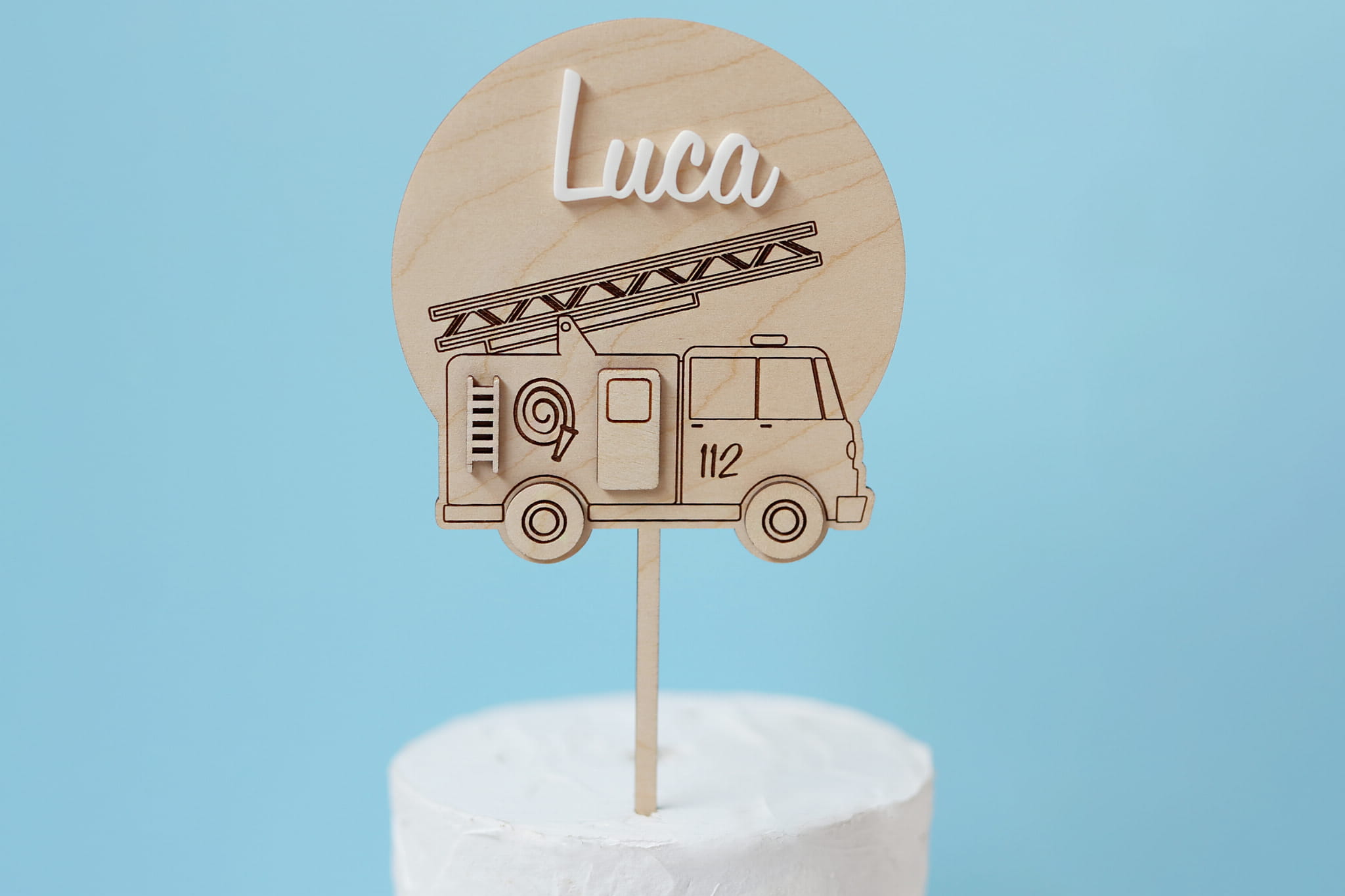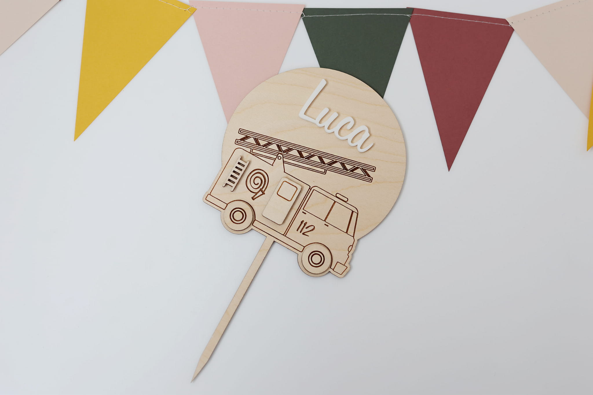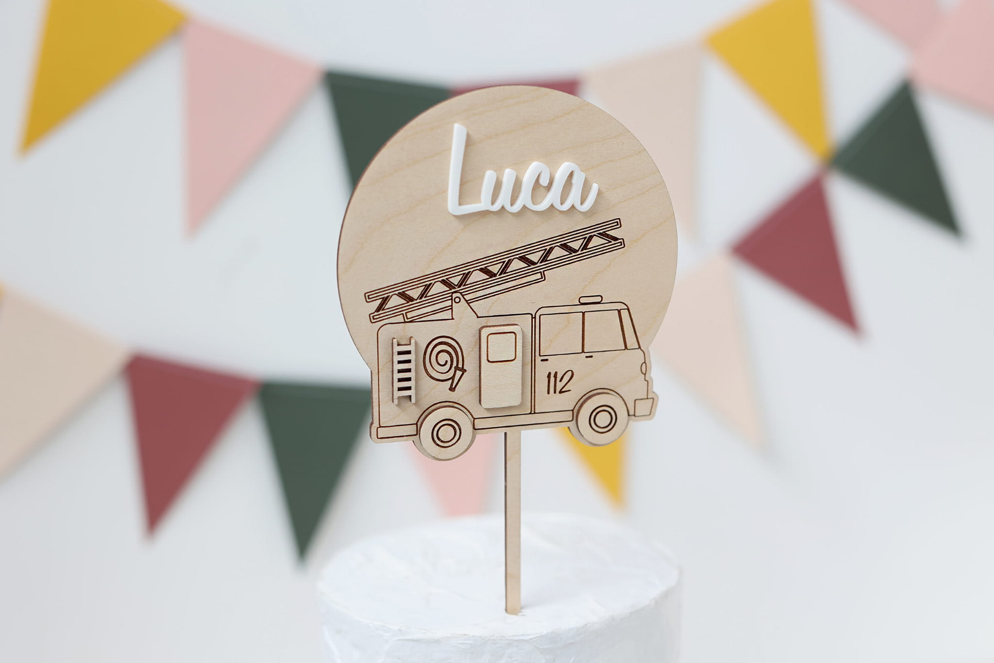 Cake Topper Feuerwehrauto Natur - Personalisiert