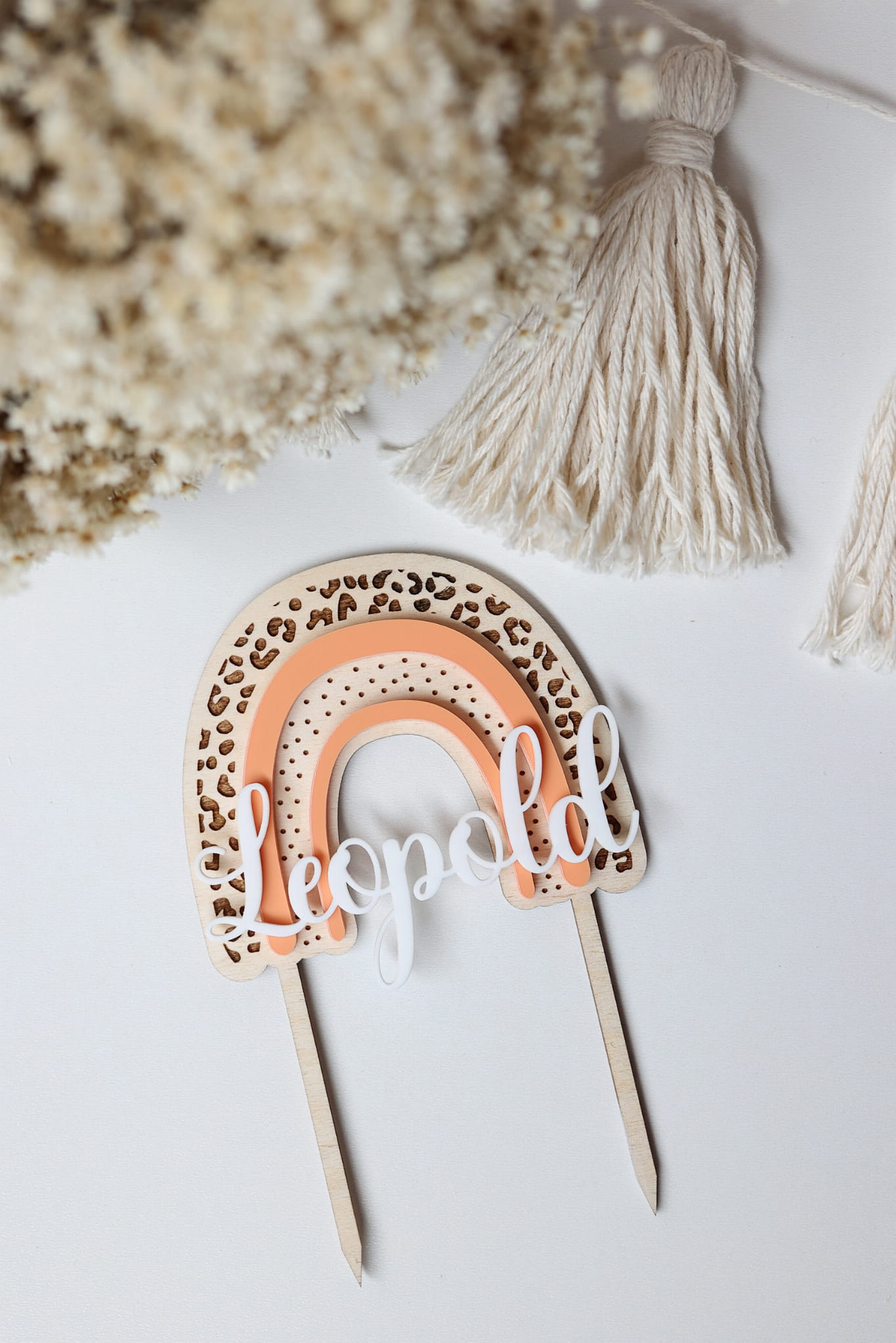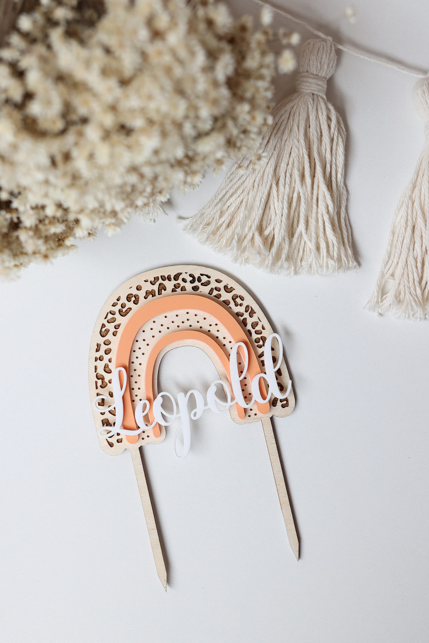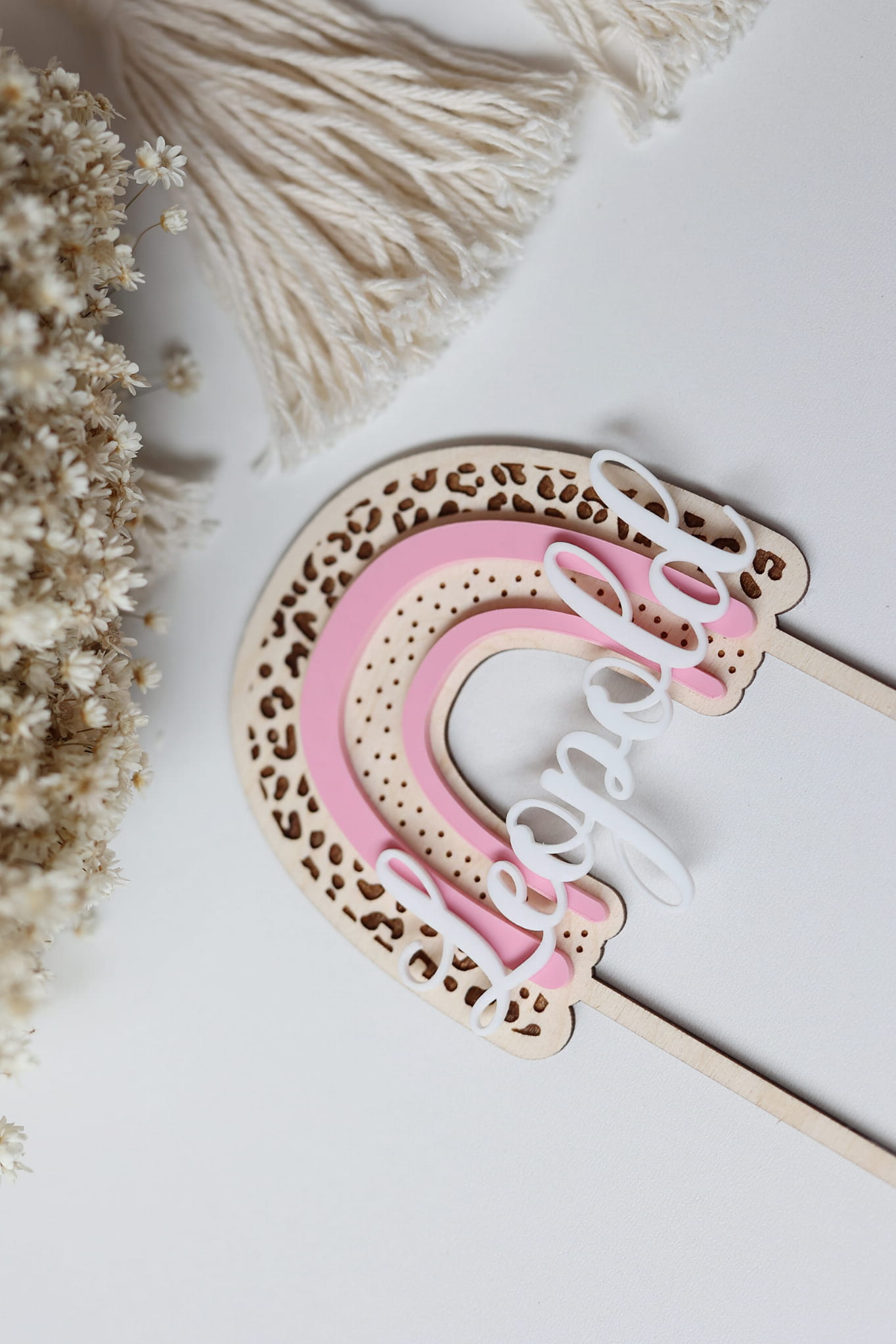Cake Topper aus Holz Leo Regenbogen Color - mit Namen