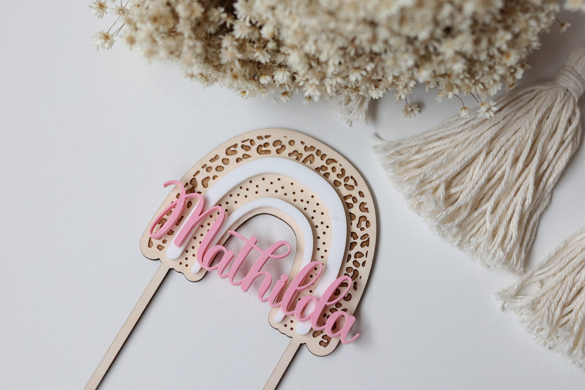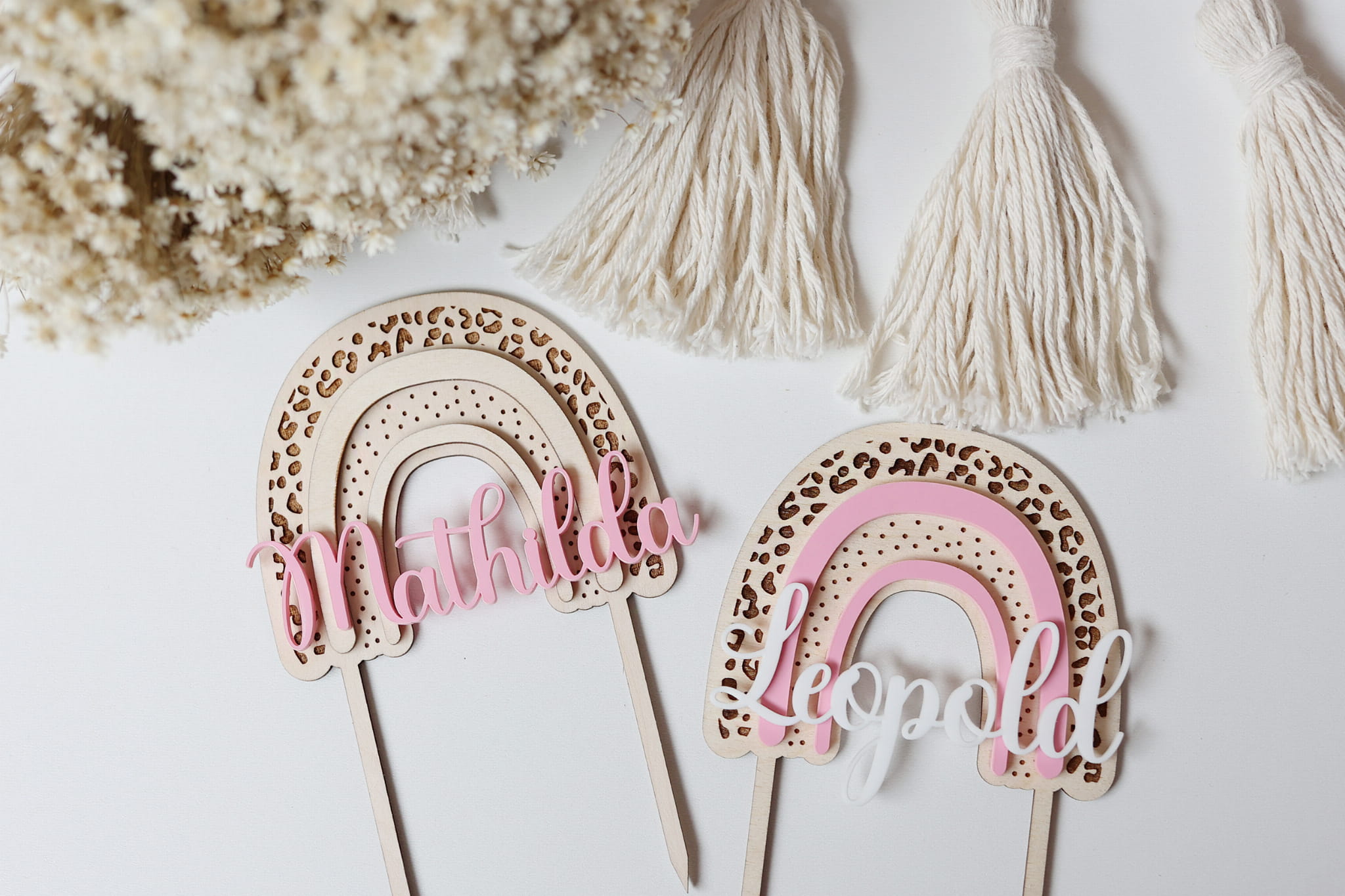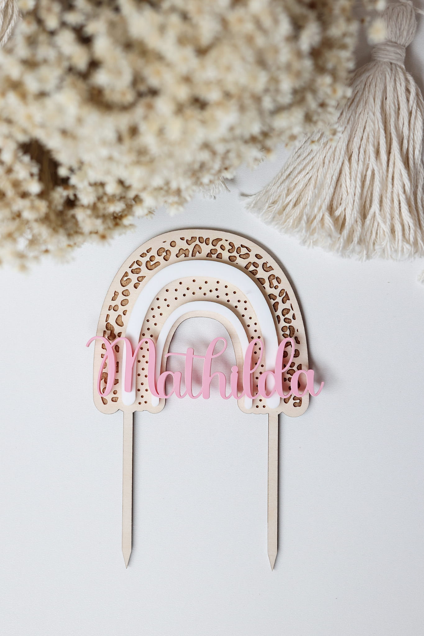 Cake Topper aus Holz Leo Regenbogen Color - mit Namen
