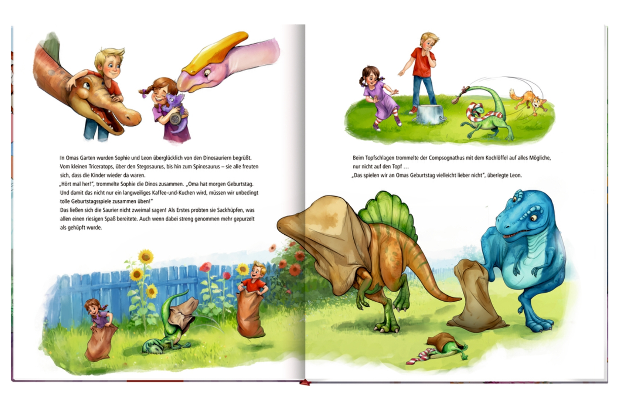 - Endlich wieder Ferien bei Oma – und dieses Mal sollen es ganz besondere werden! Denn Oma hat Geburtstag und den wollen Leon und Sophie natürlich feiern. Am Geburtstagsmorgen aber schlüpft aus einem seltsamen Ei, das Oma gerade erst von einer Expedition mitgebracht hat, ein ganz ungewöhnlicher kleiner Saurier. Selbst Oma hat so einen Dino noch nie gesehen. Und auf der Feier in ihrem Garten fühlt er sich auch sichtlich unwohl. Ob es den Kindern gelingen wird, die Party trotzdem noch steigen zu lassen ...?