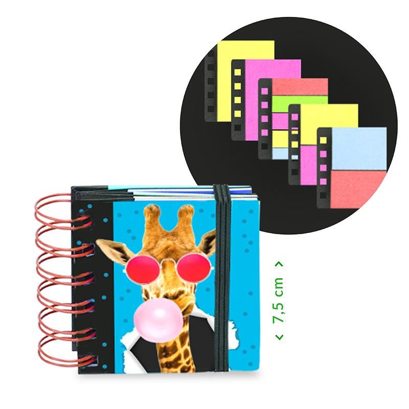 Neonfarbenes Sticky-Notes Spiralbuch mit vielen Sticky-Notes im Pocket-Format & effektvoller Spotlackierung auf dem Cover. Inkl. Gummiband. Inhalt: 5 verschiedene Sticky-Notes der Größe 5 x 1,5 cm (je 25 Blatt), 4 verschiedene Sticky-Notes der Größe 5 x 3,75 cm, und 2 verschiedene Sticky-Notes der Größe 5 x 7,5 cm (je 25 Blatt). Erhältlich in 3 versch. Varianten: Krokodil, Giraffe, Flamingo