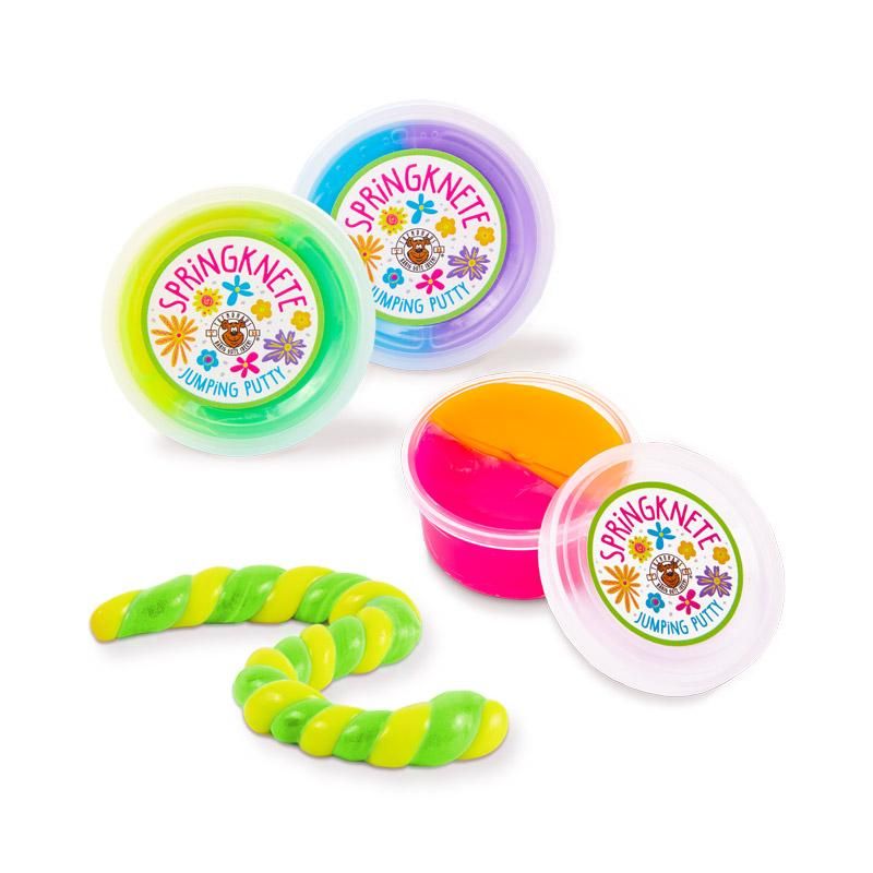 Mit dieser Springknete in 2 verschiedenen Farben kommt keine Langeweile auf - stretchen, kneten, formen, springen lassen, Farben mixen und vieles mehr. Dosengröße: Ø ca. 5,2 cm, Höhe: 2,5 cm