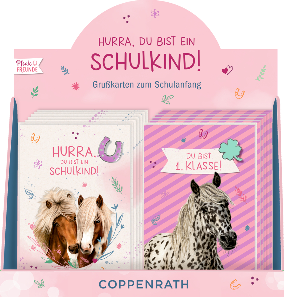 Grußkarte mit Pin: 1.Klasse/Schulkind - Pferdefreunde