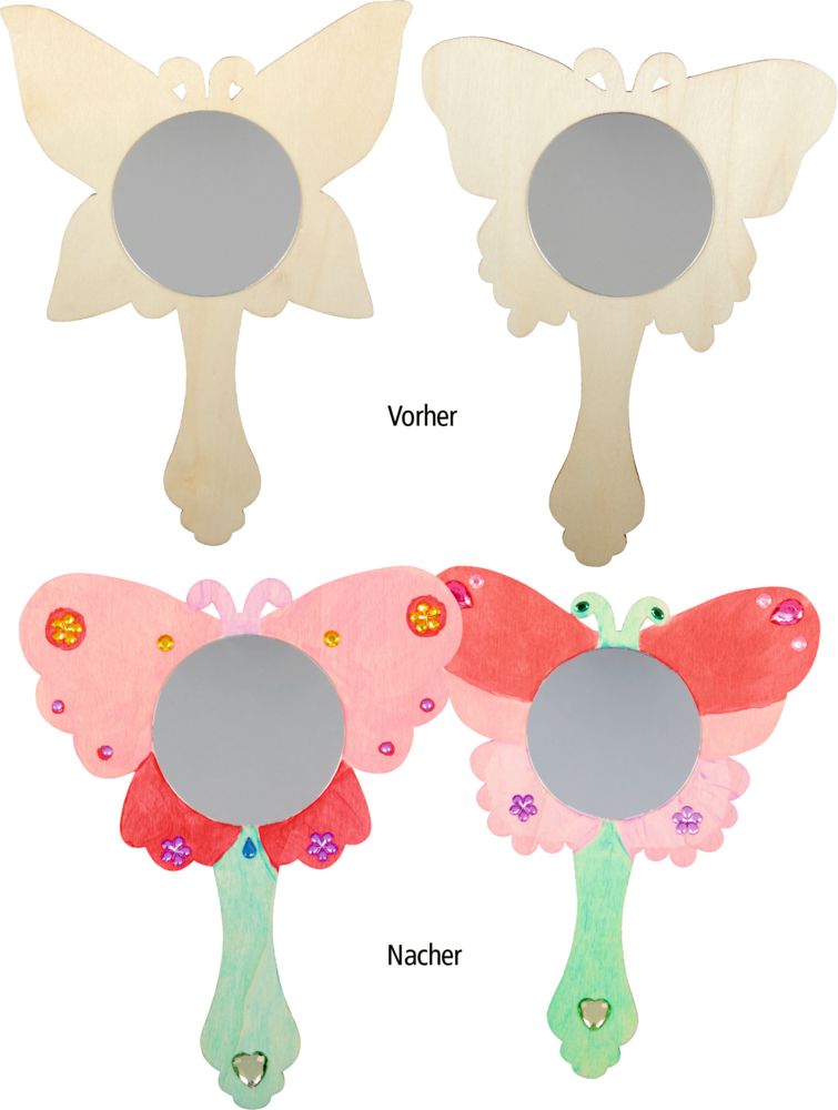 Ein Spiegel voller Feenzauber! Mit dem Handspiegel zum Selbstgestalten aus der „Prinzessin Lillifee“-Kollektion von Die Spiegelburg können kleine Künstlerinnen ihren eigenen märchenhaften Spiegel designen. Das Set enthält 4 Handspiegel mit einer Größe von ca. 21 x 16 x 0,3 cm, dazu bunte Acrylfarben, Pinsel und funkelnde Glitzersteine – für magische Bastelstunden mit Feenglanz!