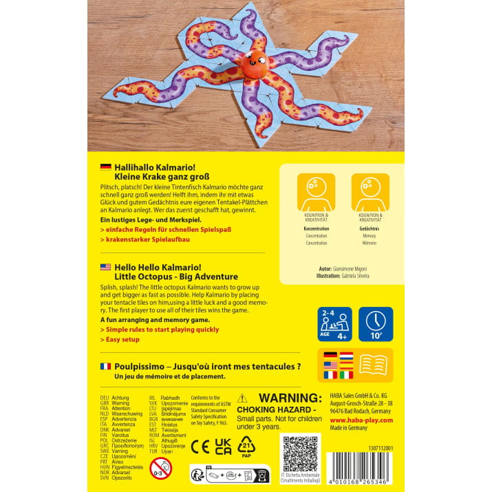 Kinderspiel Hallihallo Kalmario!, Legespiel und Merkspiel von Haba