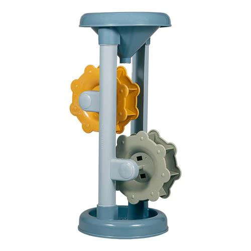 Das ist möglich mit dieser Wasser- und Sandmühle Ocean Dreams Blue. Oben am Spielzeug befindet sich ein Trichter, in den Wasser oder Sand eingefüllt wird. Wenn das Wasser oder der Sand durch den Trichter hindurch ist, gelangt es auf die Mühlen, die sich drehen werden.