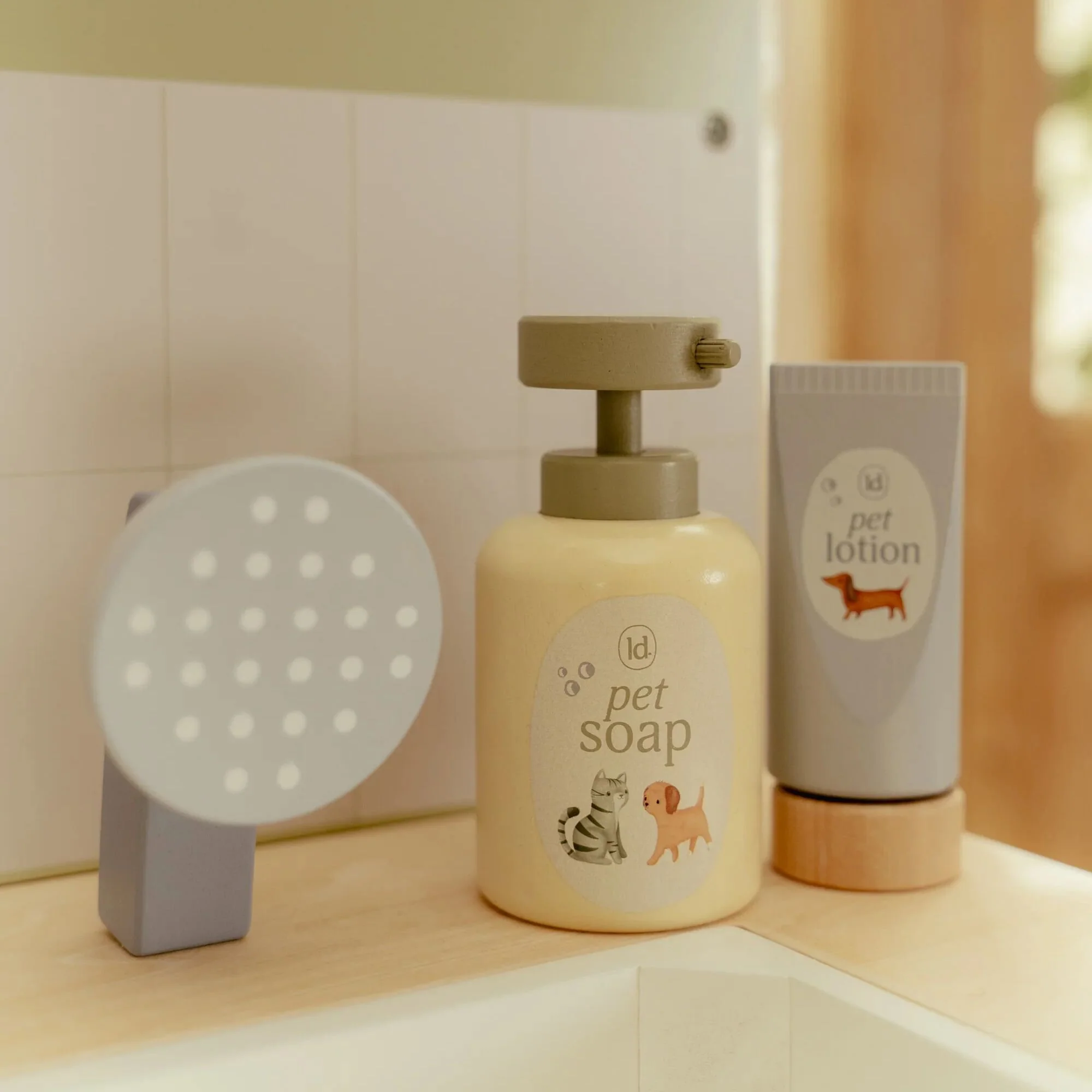 Mit dieser umfassenden hölzernen Tierarztpraxis kann sich dein Kleines ganz in die Rolle eines echten Tierarztes hineinversetzen. Das Set enthält alles, was zur Pflege von Haustieren benötigt wird, wie einen ausziehbaren Duschkopf mit Waschbecken, einen Kamm, ein Thermometer, eine Spritze und Pflaster. Ebenfalls enthalten sind ein Stoffstirnband und ein spezieller Clip, um medizinische Illustrationen und Röntgenbilder aufzuhängen.