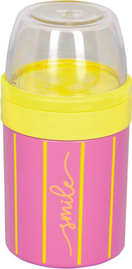 Der Lunchpot isoliert, Streifen – TO GO von Die Spiegelburg aus hochwertigem Edelstahl kombiniert trendige Streifenfarben mit einem Neon-Schriftzug „smile“, der stets für gute Laune sorgt. Praktisch im Alltag: Der Pot trennt Joghurt und Müsli, Suppen und Toppings oder Snacks in zwei Kammern. Dank der Isolierfunktion werden Inhalte bis zu 6 Stunden warm und bis zu 6 Stunden kalt gehalten. Mit einer Höhe von ca. 17 cm und einem Durchmesser von ca. 9 cm passt der Lunchpot gut in die Tasche oder in den Rucksack. Das Füllvolumen beträgt ca. 400 ml im Becher und ca. 170 ml im Deckel. Gefertigt aus Edelstahl – robust und bereit für unterwegs.