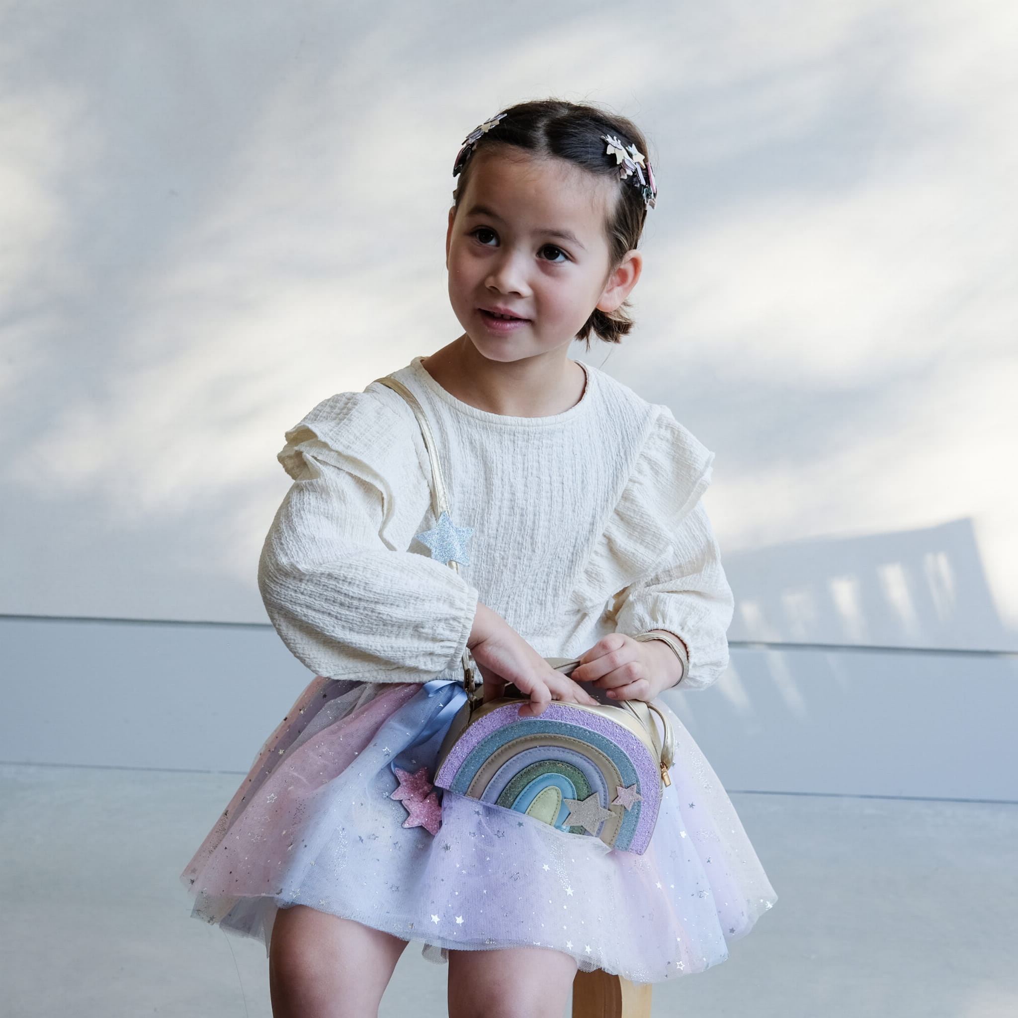 Unsere Dreamland-Regenbogentasche ist eine perfekte Mischung aus Glitzer, Glitzer und Pastell-Perfektion! Mit viel Platz für ihre kleinen Schätze verleiht diese Tasche garantiert jedem Outfit ein wenig Magie!