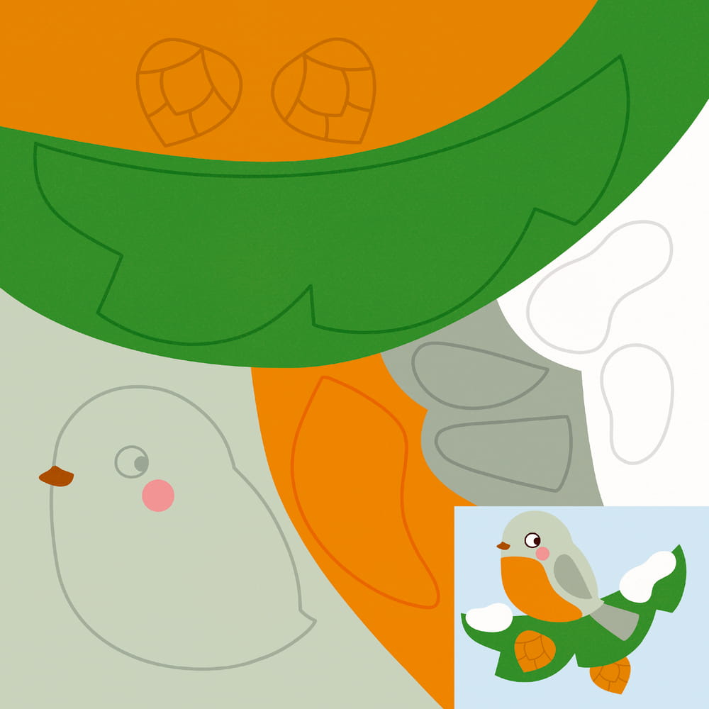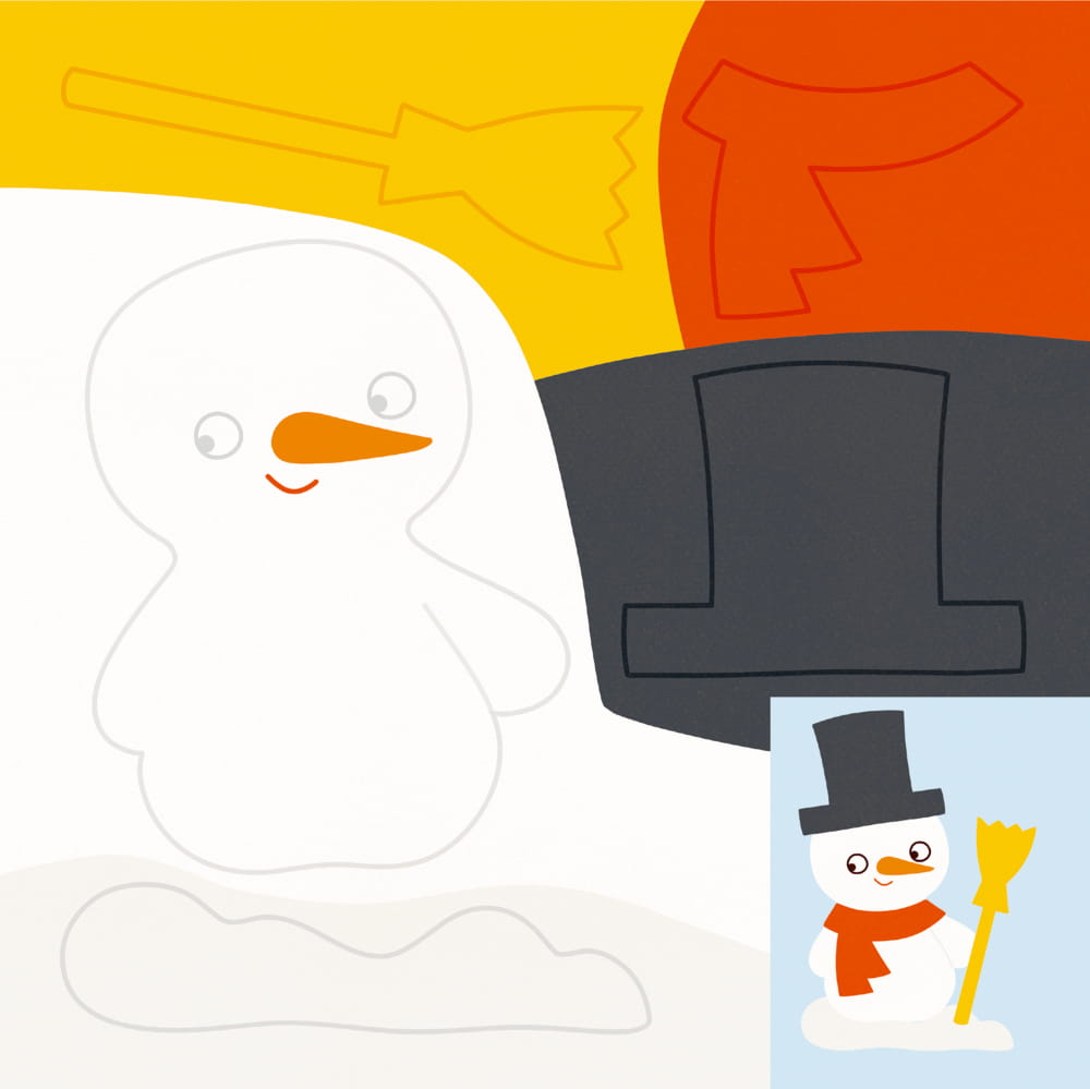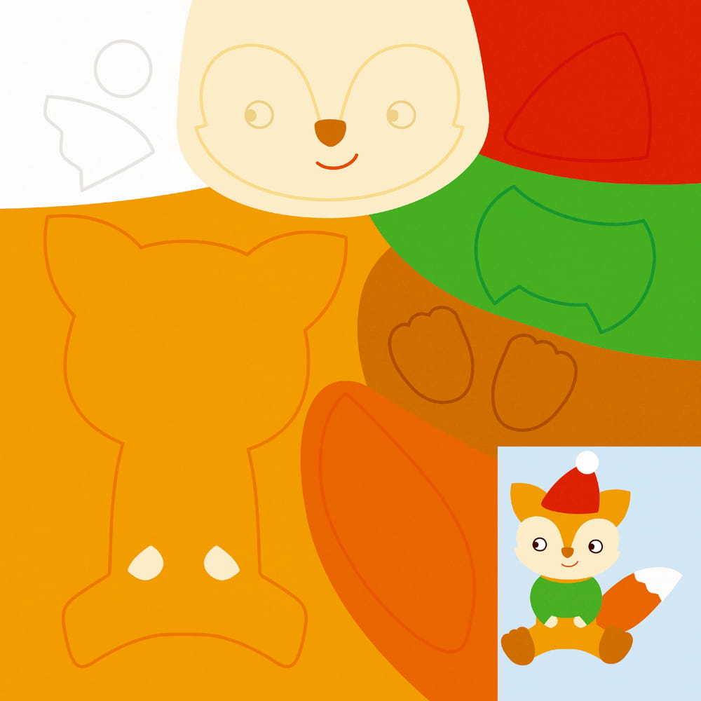 24 Fensterbilder basteln - so geht's: Ein Motiv aussuchen und alle Teile ausschneiden. Alle Teile so zusammenkleben, wie es die kleine Anleitung auf jeder Seite zeigt. Passende Augen vom Stickerbogen lösen und an den gekennzeichneten Stellen einkleben. Das fertige Motiv an eine Fensterscheibe kleben.