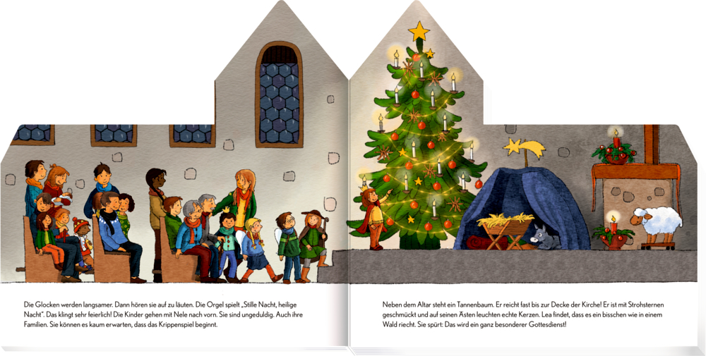 Die großen Kirchenglocken läuten. Sie laden die Menschen zum Weihnachtsgottesdienst ein. Auch Lea und Jonas gehen mit ihrer Familie in die Kirche. Die beiden sind schon sehr aufgeregt: Sie machen heute beim Krippenspiel mit … Ein stimmungsvolles Buch, das weihnachtliche Traditionen wie den Adventskranz, das Krippenspiel oder die biblische Weihnachtsgeschichte erklärt und die Vorfreude auf das Weihnachtsfest weckt. Perfekt für gemütliche Adventsnachmittage mit der ganzen Familie!
