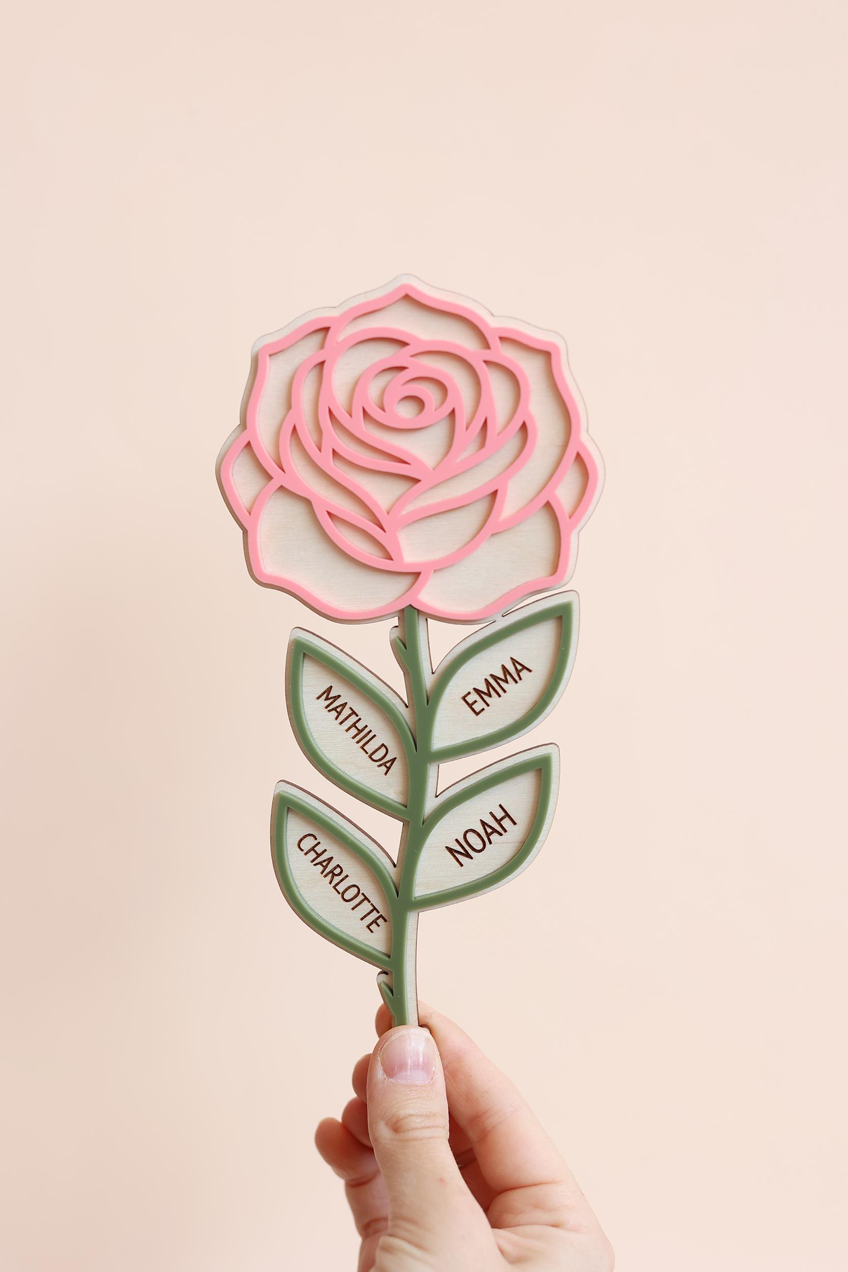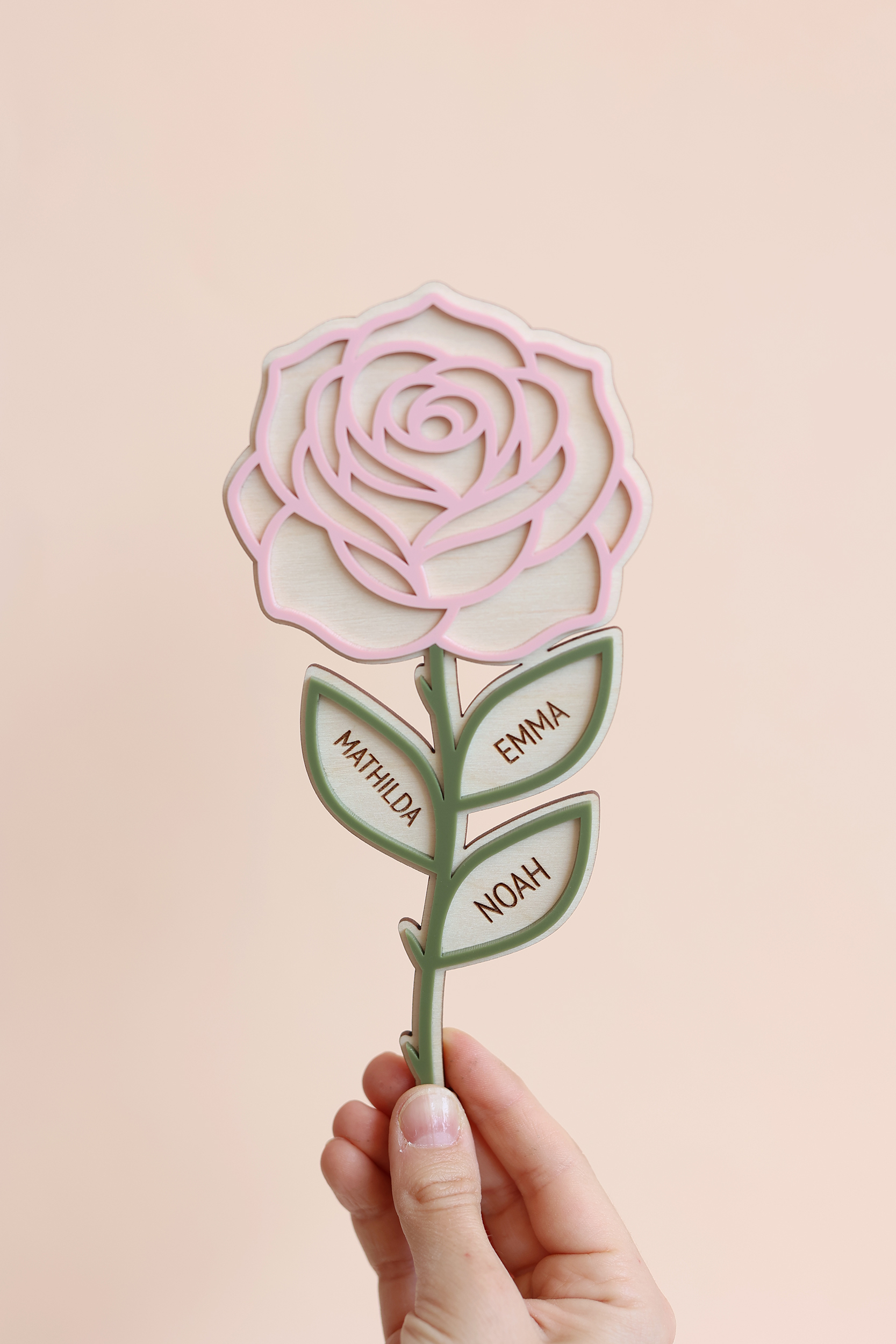 Diese wunderschöne, personalisierte Holzblume ist ein ganz besonderes Geschenk zum Muttertag oder für Oma. Jede Blume wird individuell mit bis zu 6 Namen graviert – so entsteht ein einzigartiges Erinnerungsstück voller Liebe.