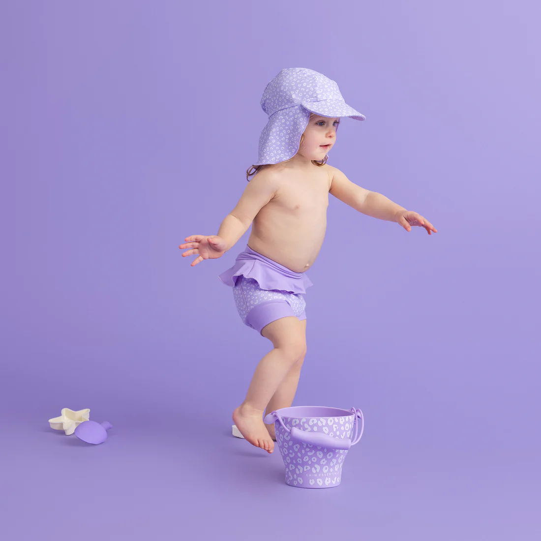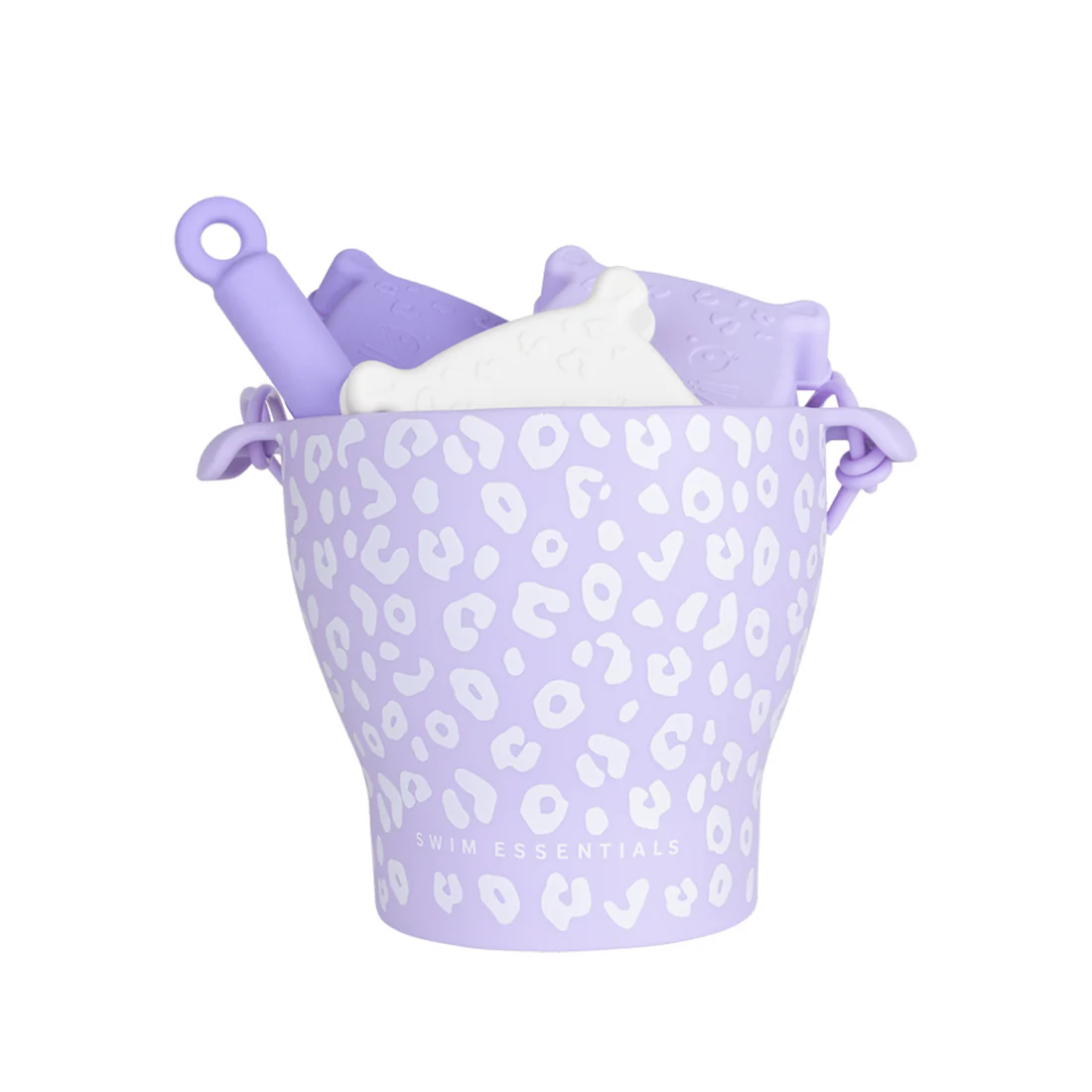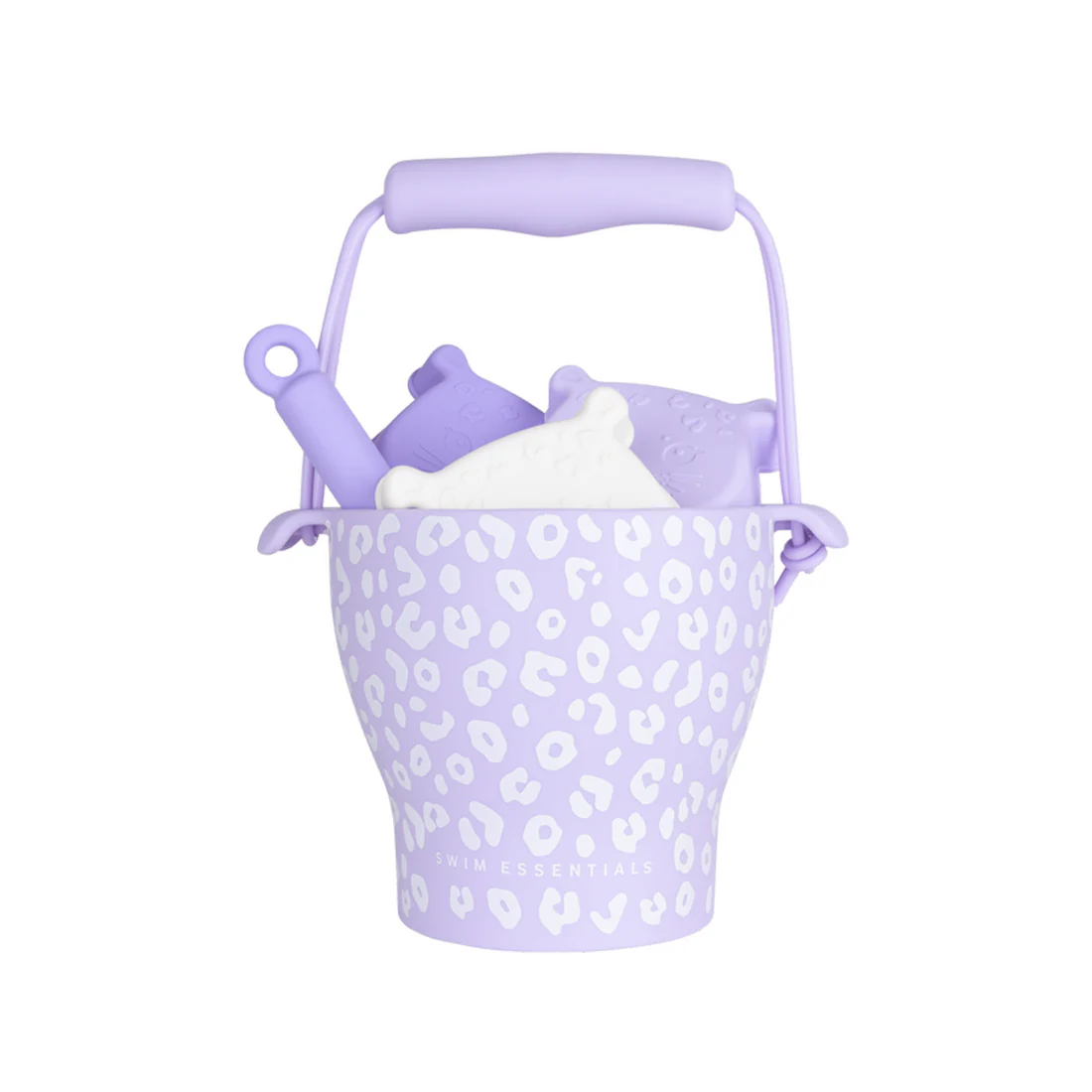 Lassen Sie Ihre Kinder stundenlang am Strand Spaß haben, während sie sich mit dem robusten Eimerchen, der fröhlichen Schaufel und den drei verspielten Formen im lilafarbenen Panther-Motiv vergnügen. Und es kommt noch besser: Mit der praktischen kleinen Tasche ist das Aufräumen so einfach wie das Bauen von Sandburgen