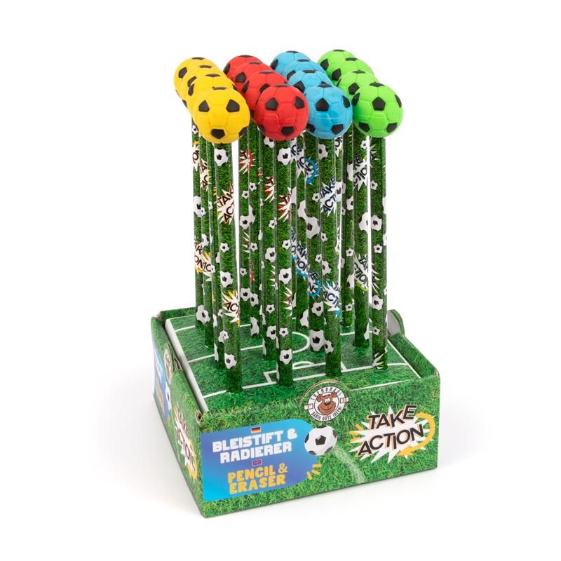 TAKE ACTION Bleistifte & Radierer Fußball, 4-fach sortiert - Trendhaus