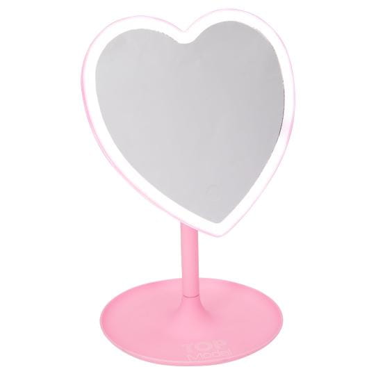 Spieglein, Spieglein: Mit dem rosafarbenen Schminkspiegel in Herzform hat man durch den LED-Leuchtrand perfektes Licht für die Beauty-Routine. Der runde Fuß des Spiegels eignet sich zum Ablegen von kleinen Dingen wie zum Beispiel Schmuck. Die Neigung des Spiegels ist verstellbar. Von TOPModel. Batterien enthalten (3x AAA, 1,5V).