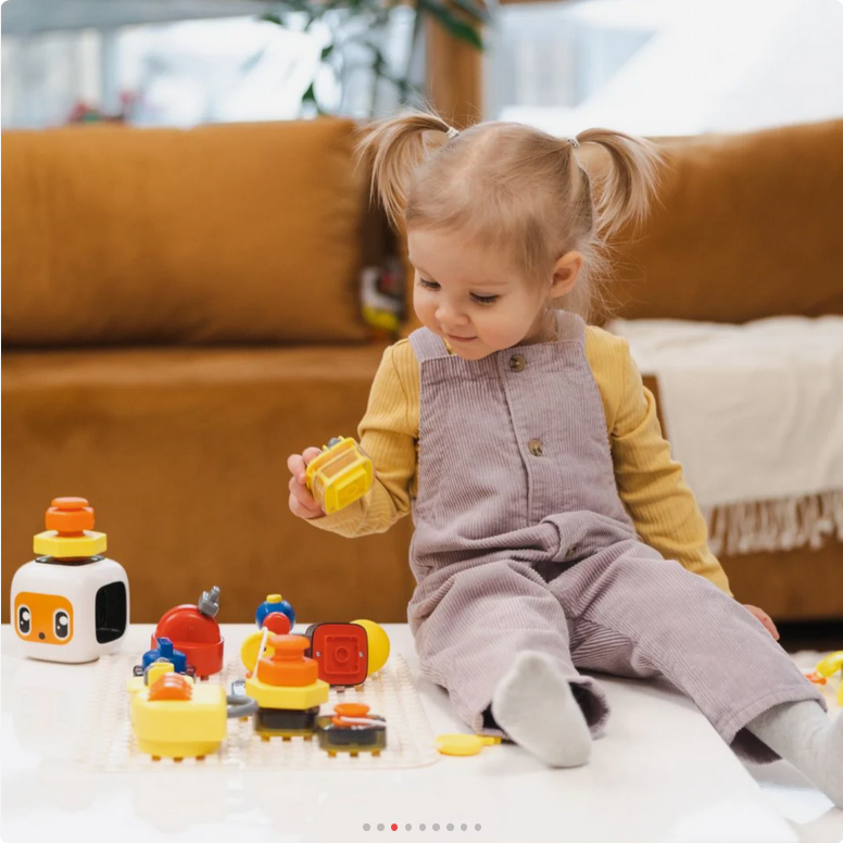 Das Spielzeug wächst zudem mit den Kindern mit und bietet jeweils fünf Steckelemente in unterschiedlichen Schwierigkeitsstufen – perfekt passend zu den Entwicklungsmeilensteinen von Kleinkindern ab 12 Monaten, ab 18 Monaten und ab 24 Monaten.