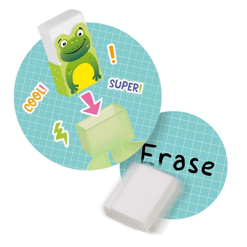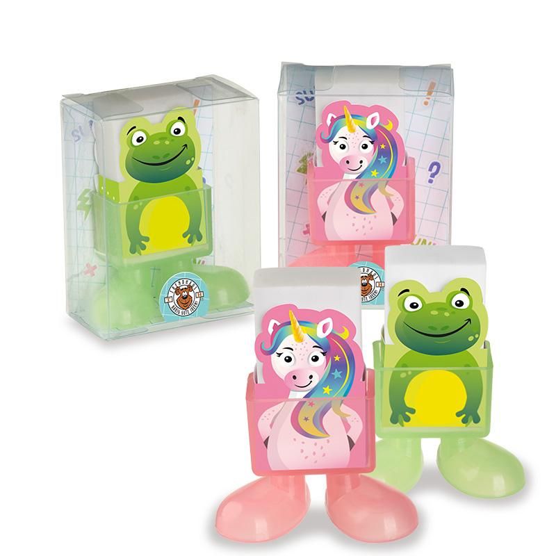 Dieser Radierer steht in einer praktischen Halterung, die dank kleiner „Füße“ besonders witzig aussieht und stabil auf dem Schreibtisch steht. So bleibt der Radierer jederzeit griffbereit, sauber verstaut und sorgt nebenbei für einen kleinen Hingucker am Arbeitsplatz. Größe: ca. 4,7 x 6 x 2,5 cm