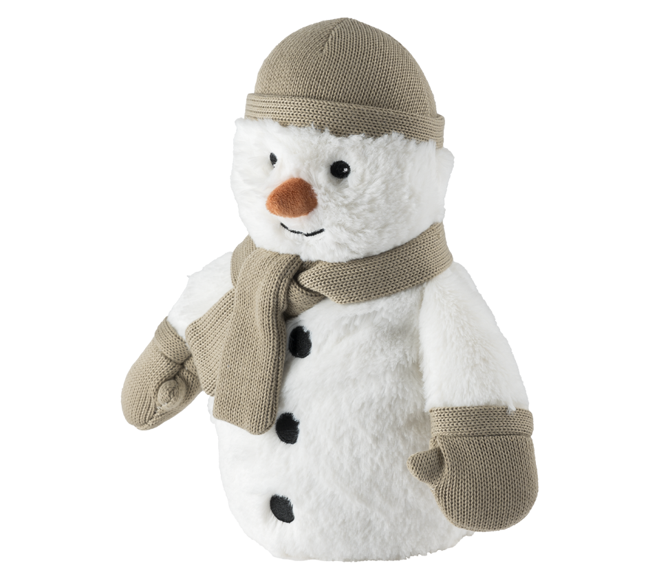 Strahlend weiß und kuschelig weich: unser Schneemann ist ein lustiger Geselle. Immer zu Scherzen aufgelegt zaubert der verschneite Kerl jedem ein Lächeln ins Gesicht. Er ist ca. 23 cm hoch und wiegt etwa 750 g. Ein kuscheliger Freund aus dem hohen Norden. Mit Wärme und Lavendelduft verbreitet er Gemütlichkeit, egal ob drinnen auf dem Sofa oder draußen im Schnee.